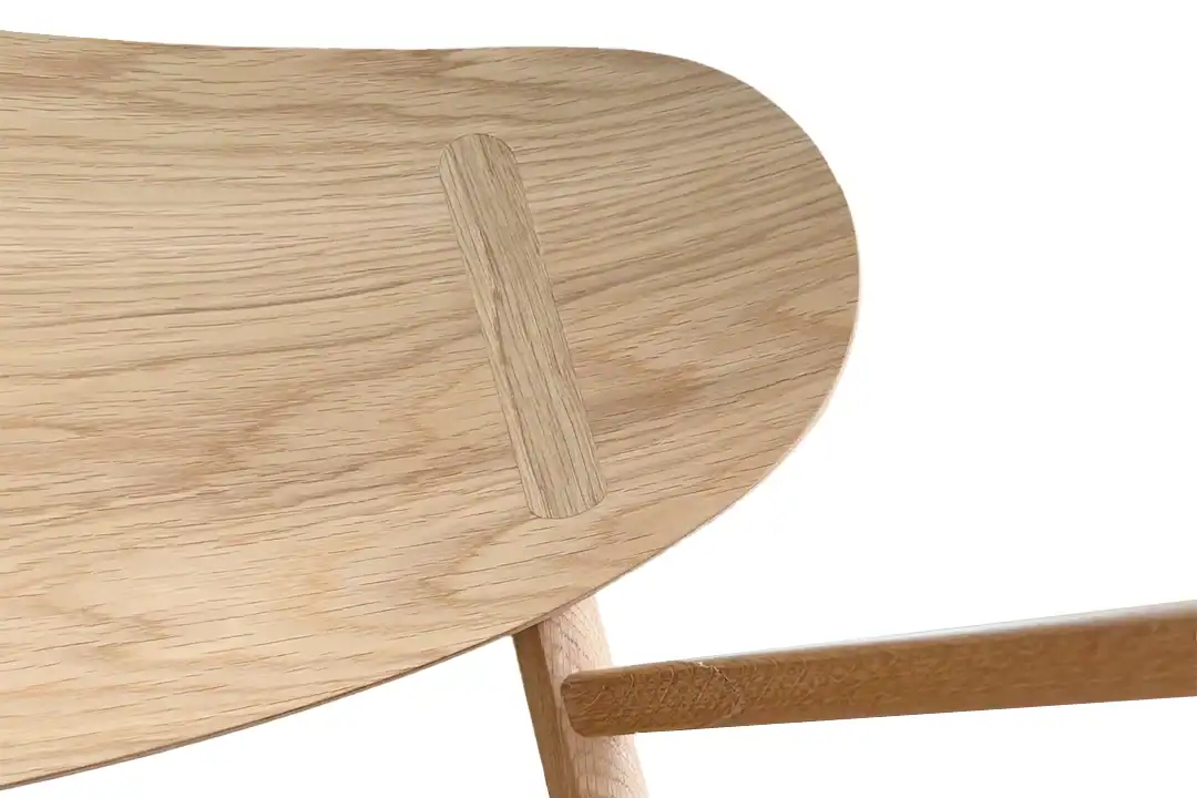 True to original dimensions and details, this chair blends a lightweight yet sturdy oak frame with an ergonomic, sculpted back. Each element is designed for comfort, visual beauty, and easy movement in any space.