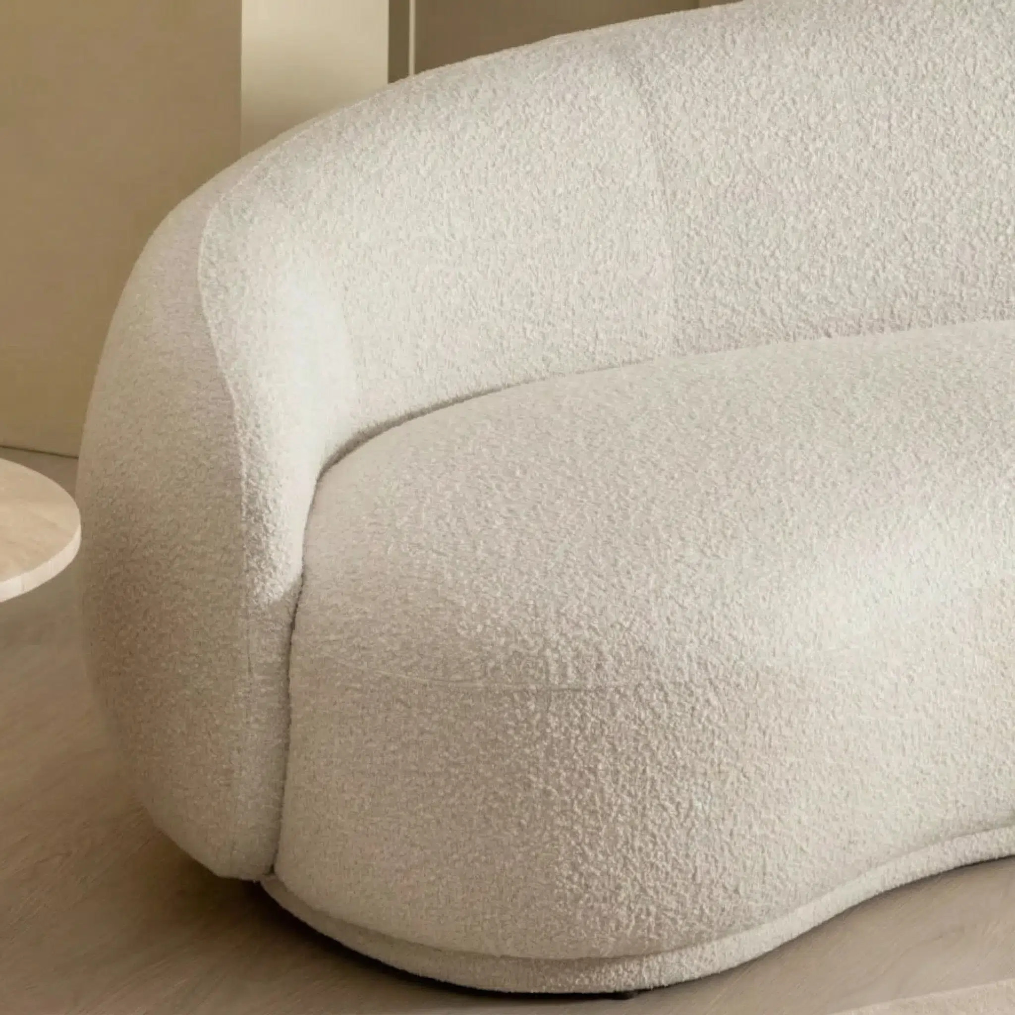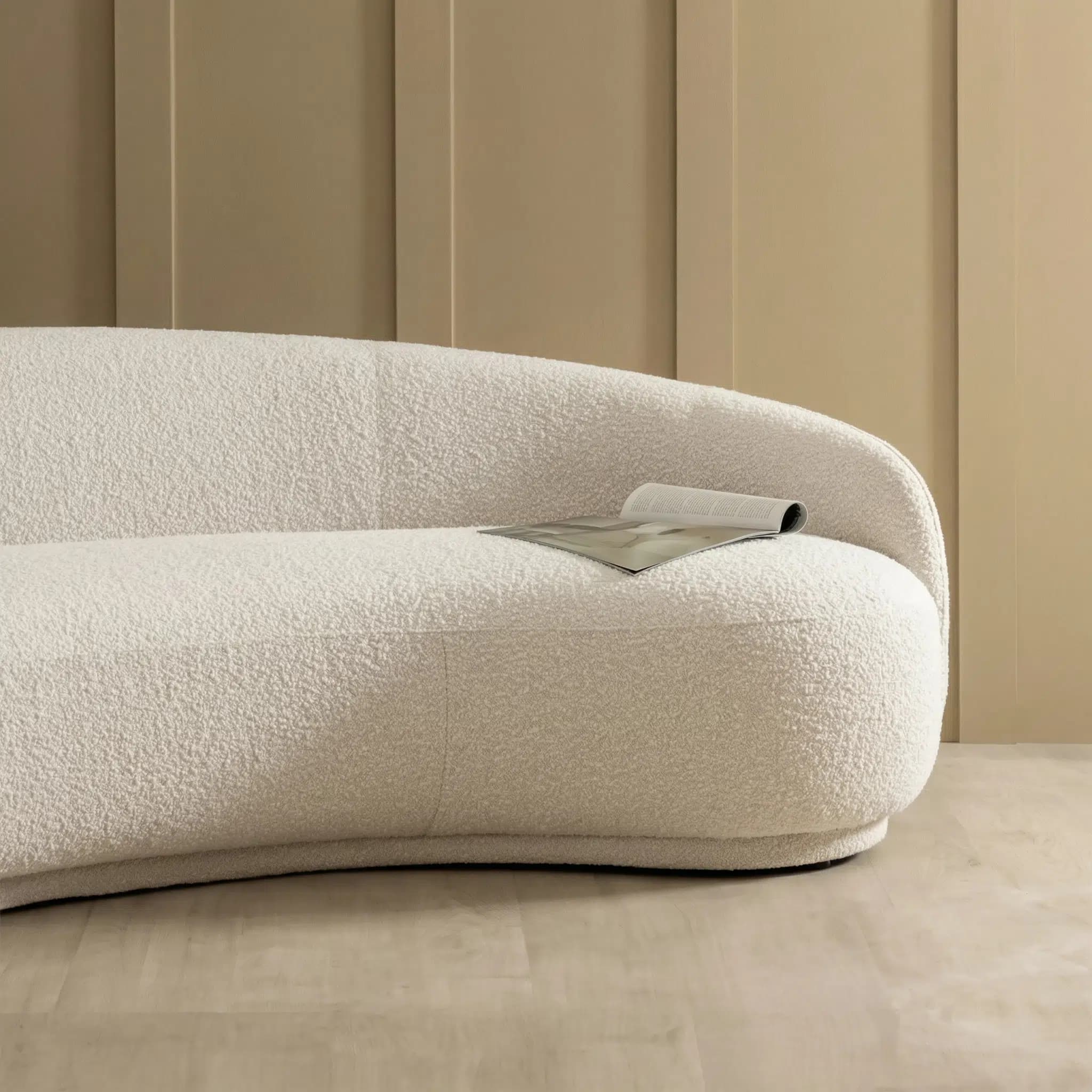 The curve of this sofa somehow makes an illusion that my room is spacious. It looks slim, but can fit like 4 or 5 people which is lovely and practical!