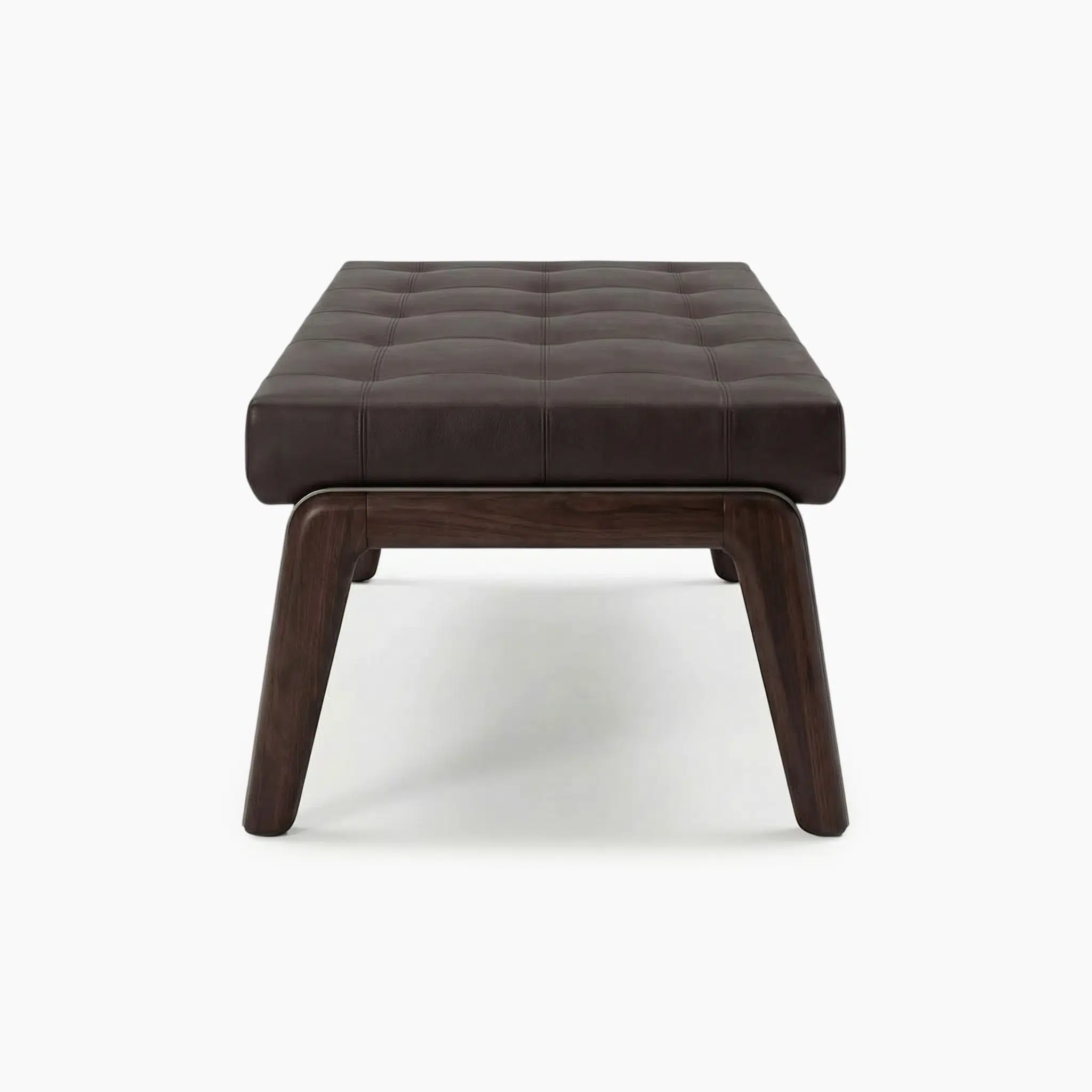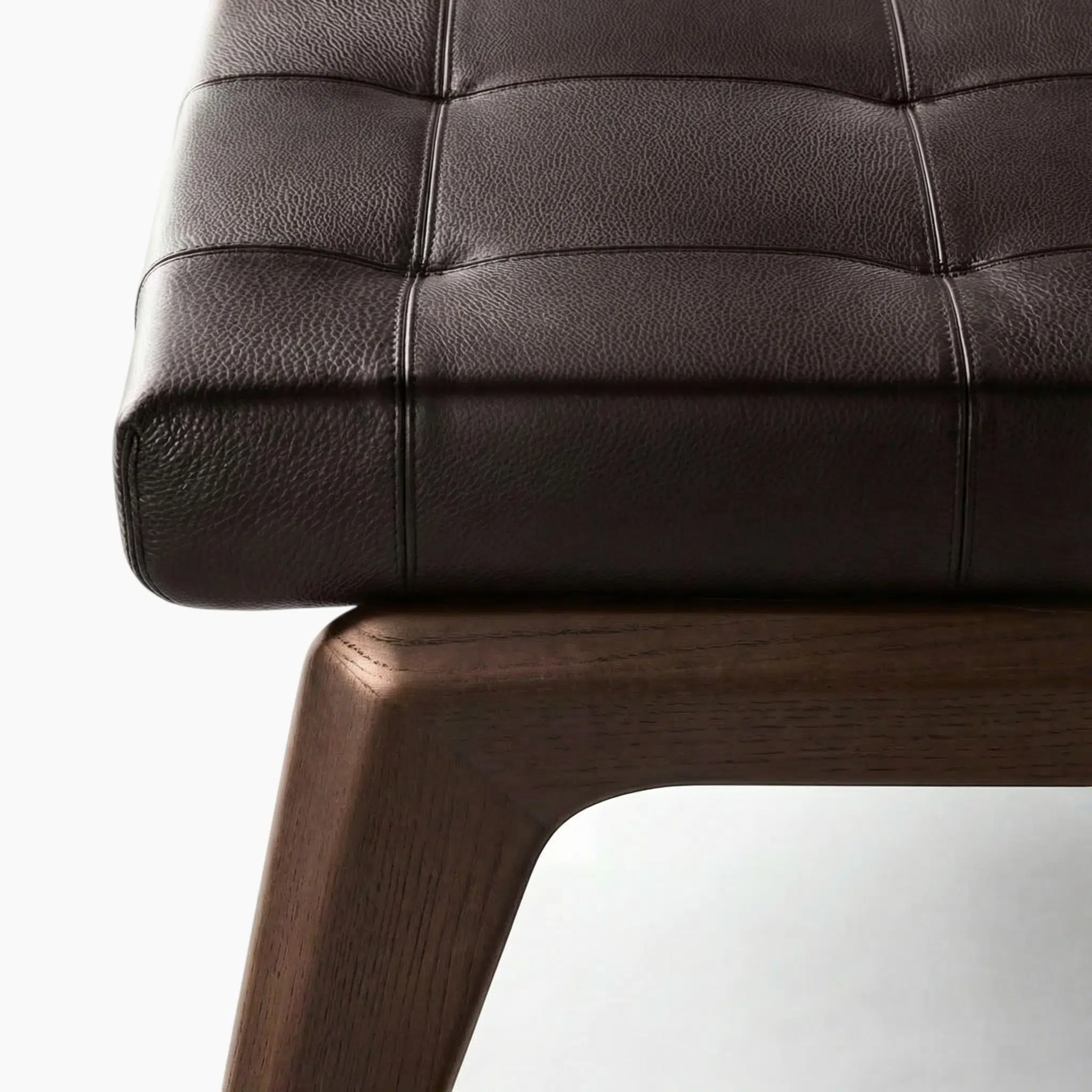 Crafted from solid ash wood, the 40 mm thick base is finished in a Dark Moka semi-gloss lacquer that adds richness and durability to the bench’s foundation.