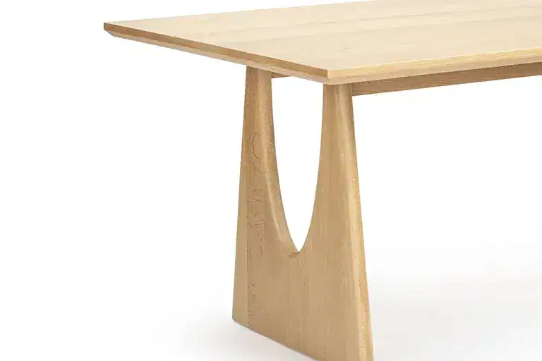 Crafted from solid oak, the sculptural double-leg design forms an elegant open gap that adds architectural interest while ensuring strength and stability.