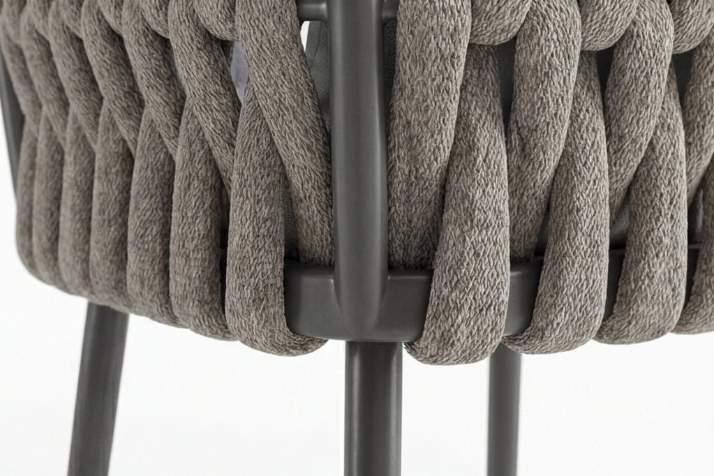We bought a set of four for our patio and they look great. The material holds up really well outdoors and they're comfortable for extended outdoor meals. The design is clean and minimal and they pair well with almost any outdoor table. Very happy with the quality.